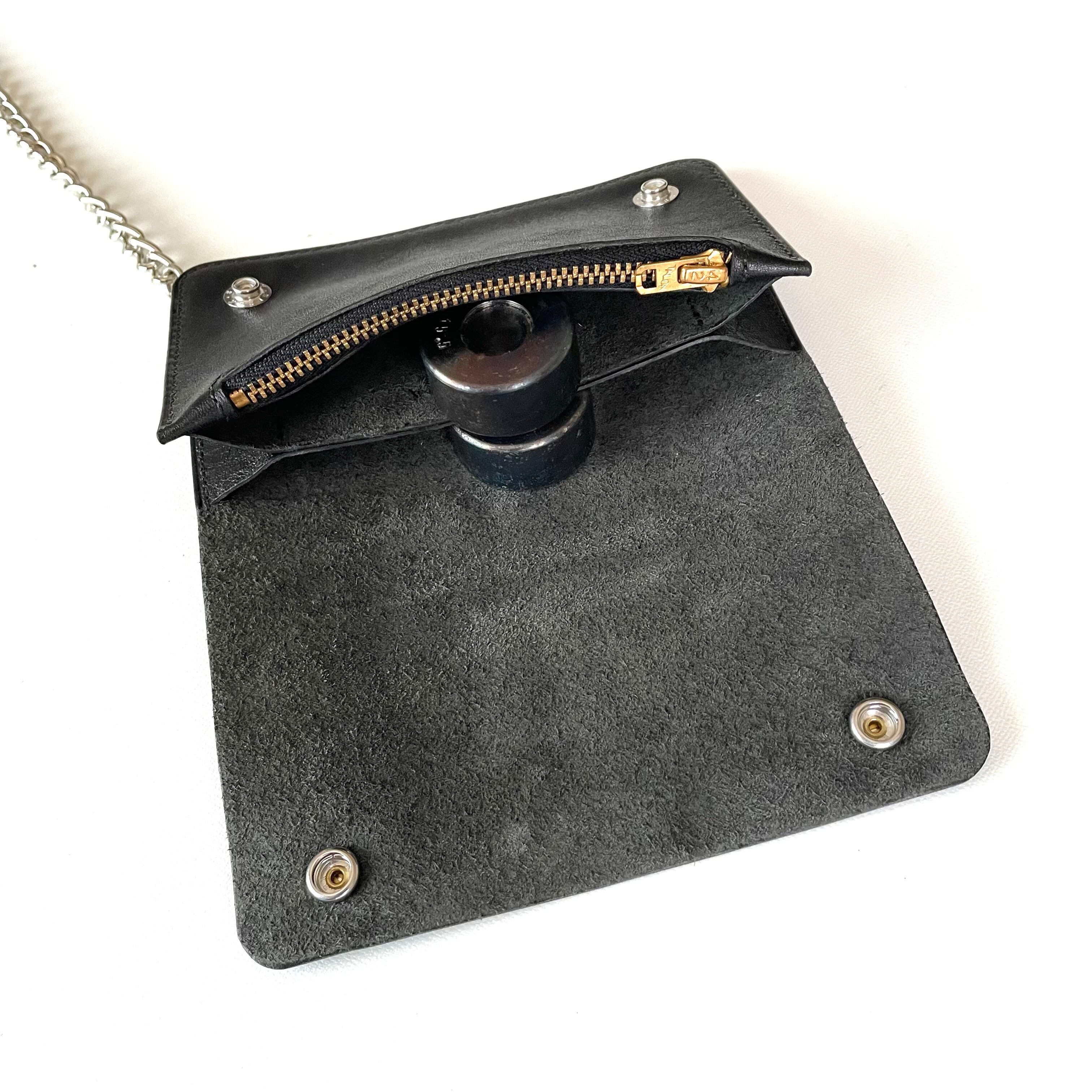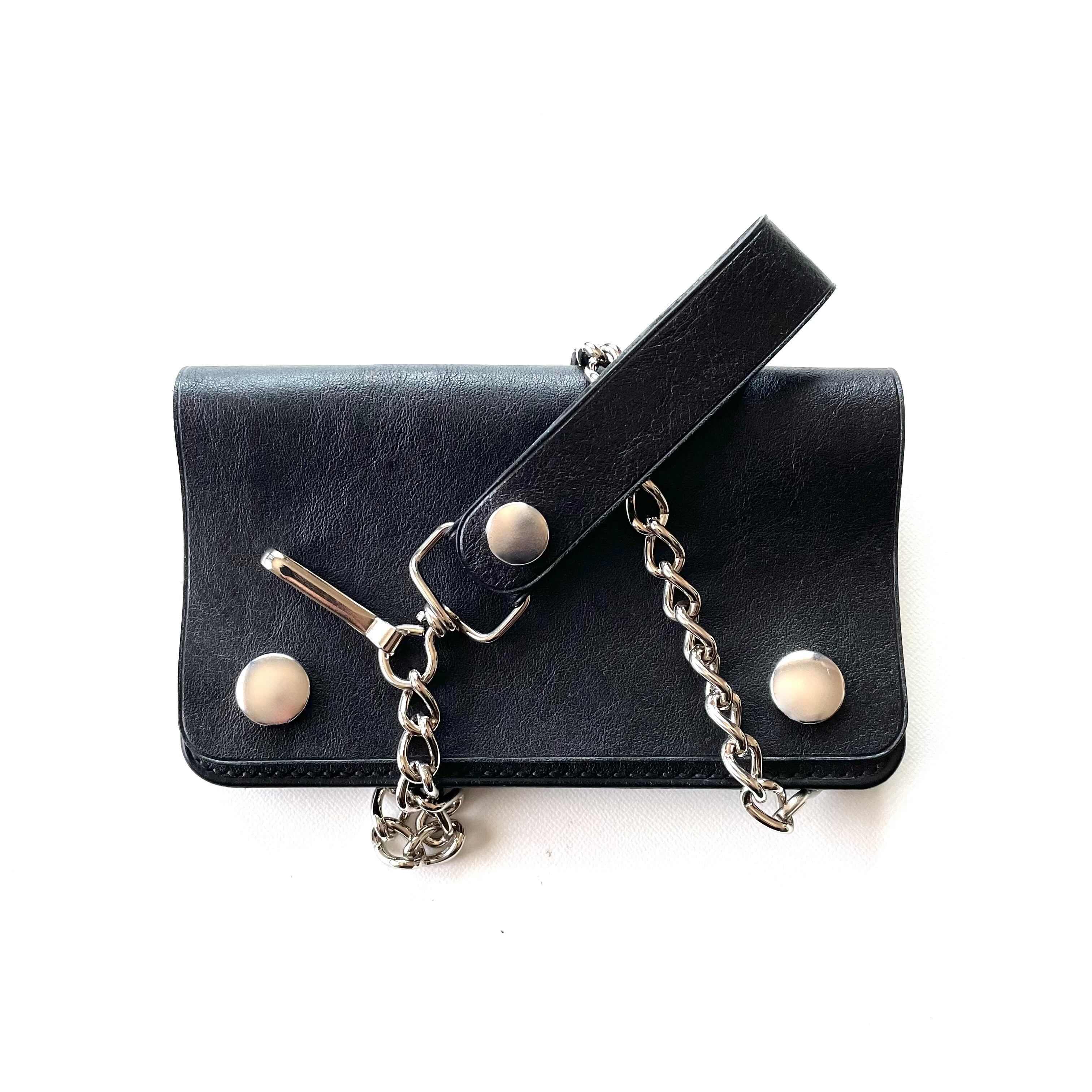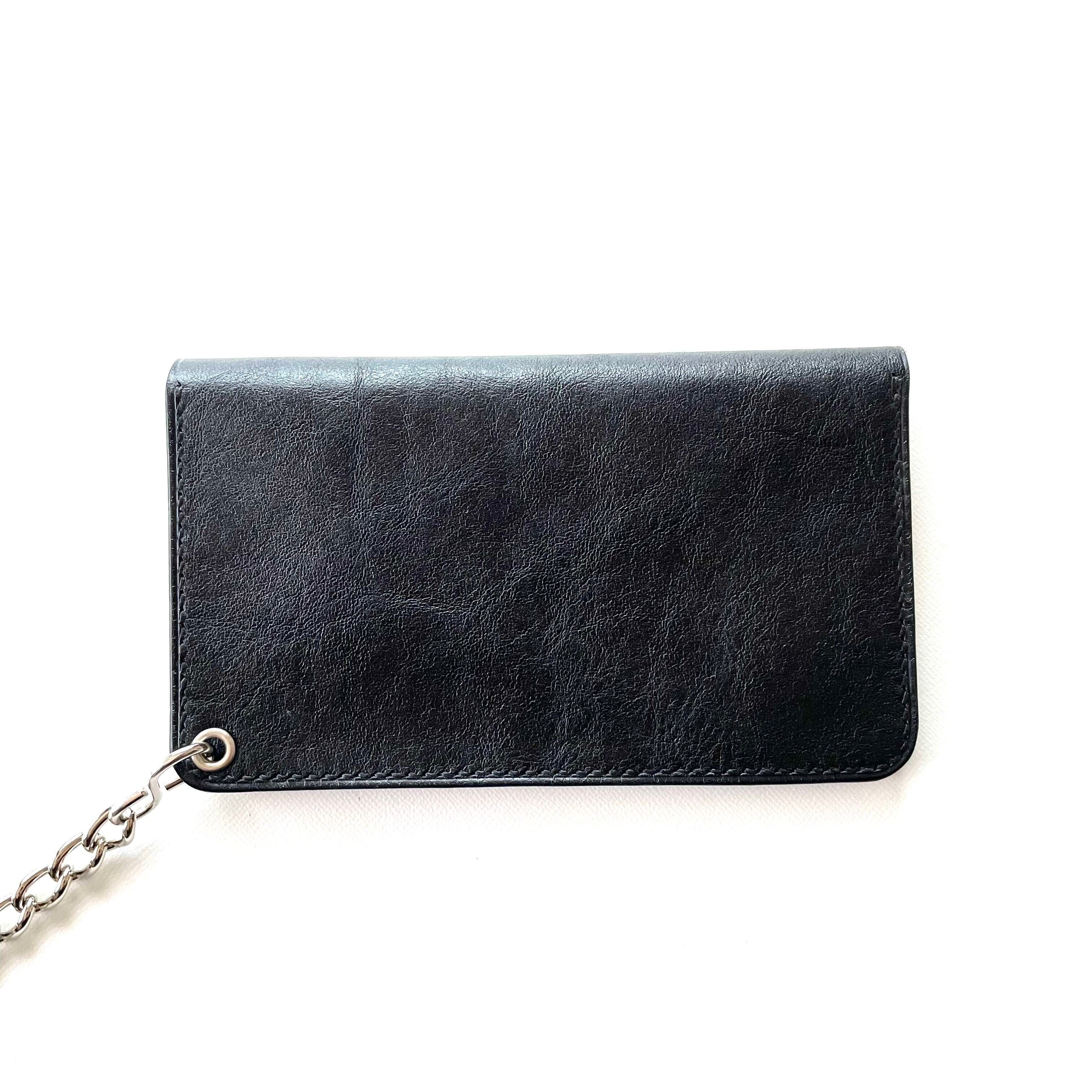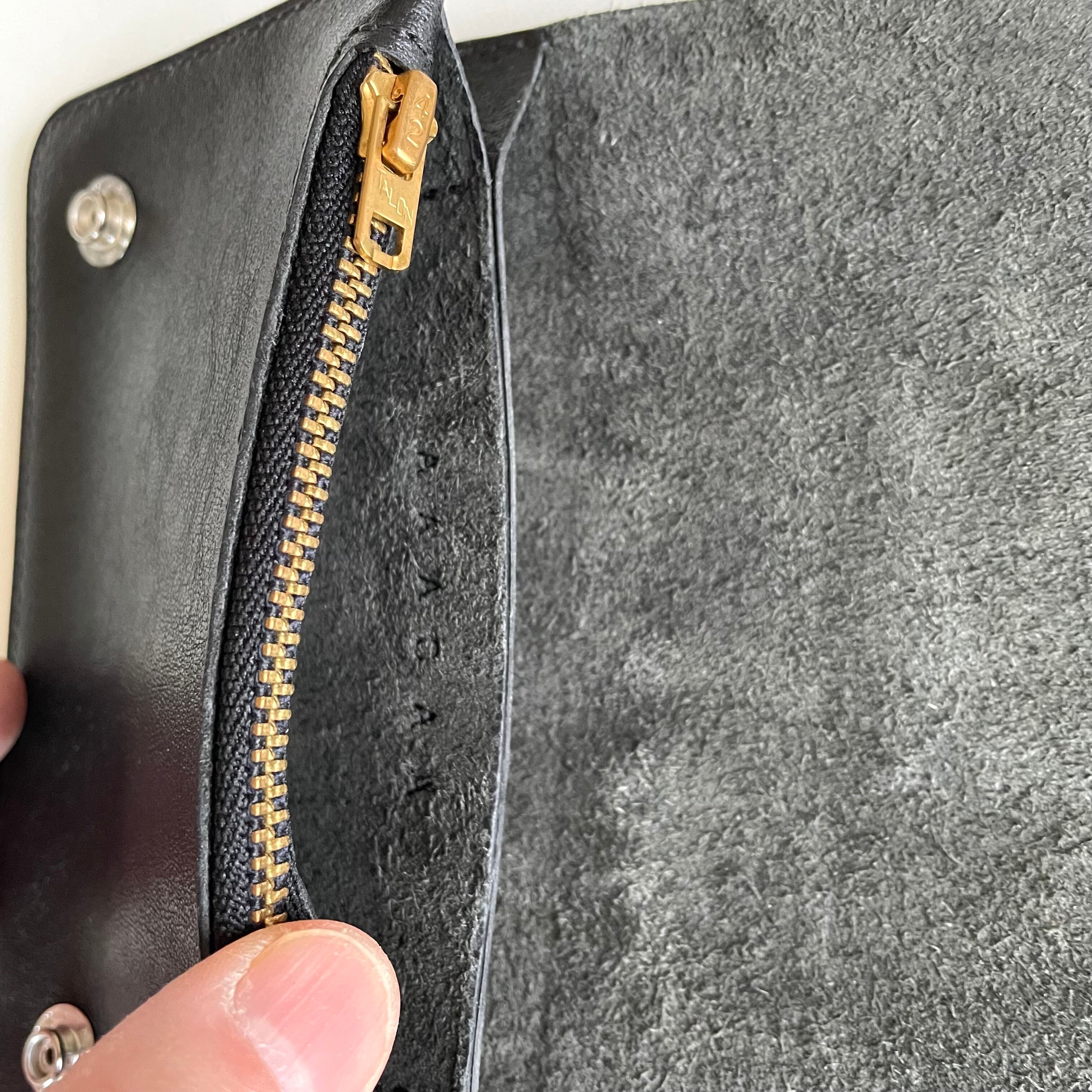 ミドルトラッカーウォレット 英国クレイトン社デッドストックレザー ヴィンテージタロンジッパー ブラック