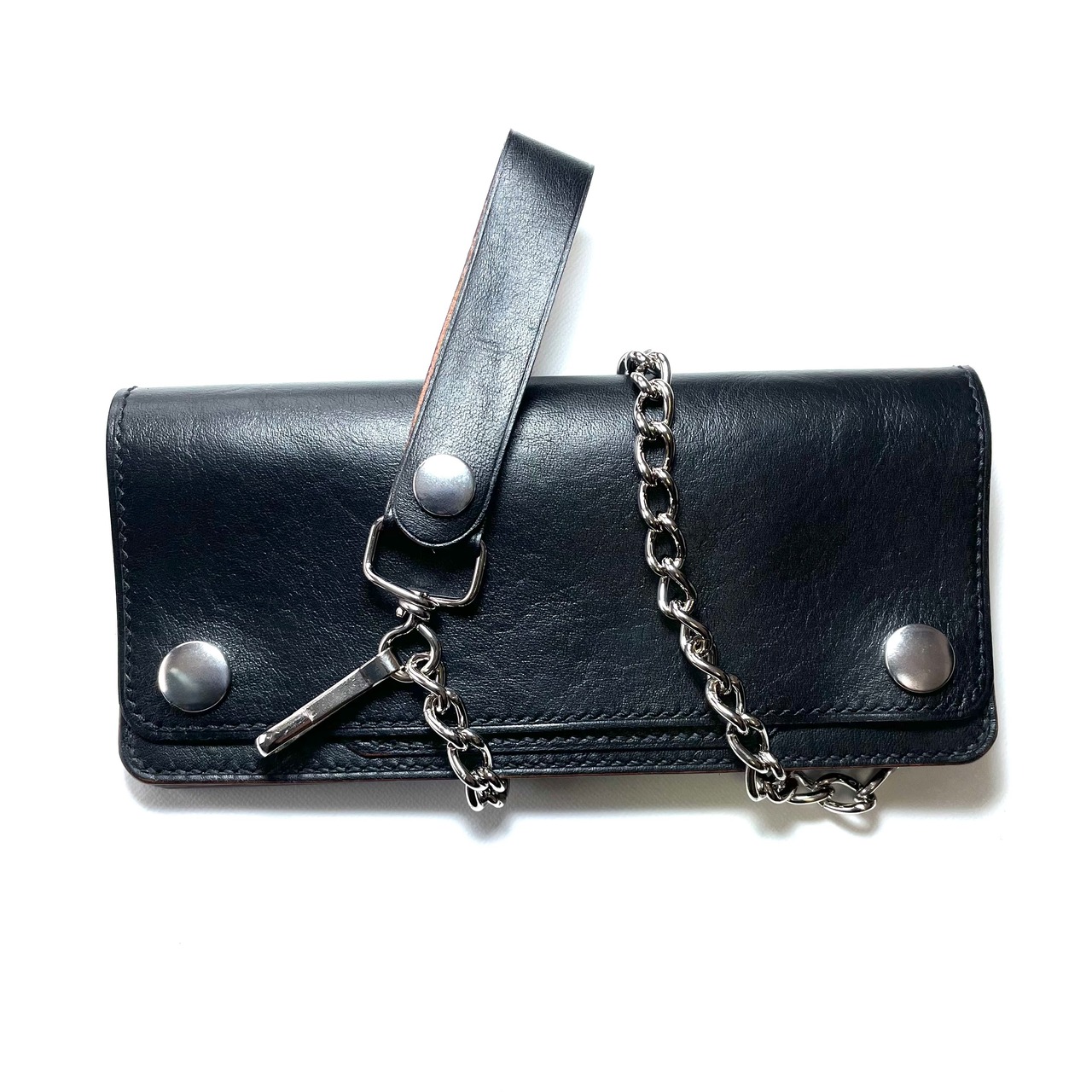 馬革専門タンナーの新喜皮革製ホースハイドレザーで仕立てた、トラッカーウォレットのチェーンセットです。