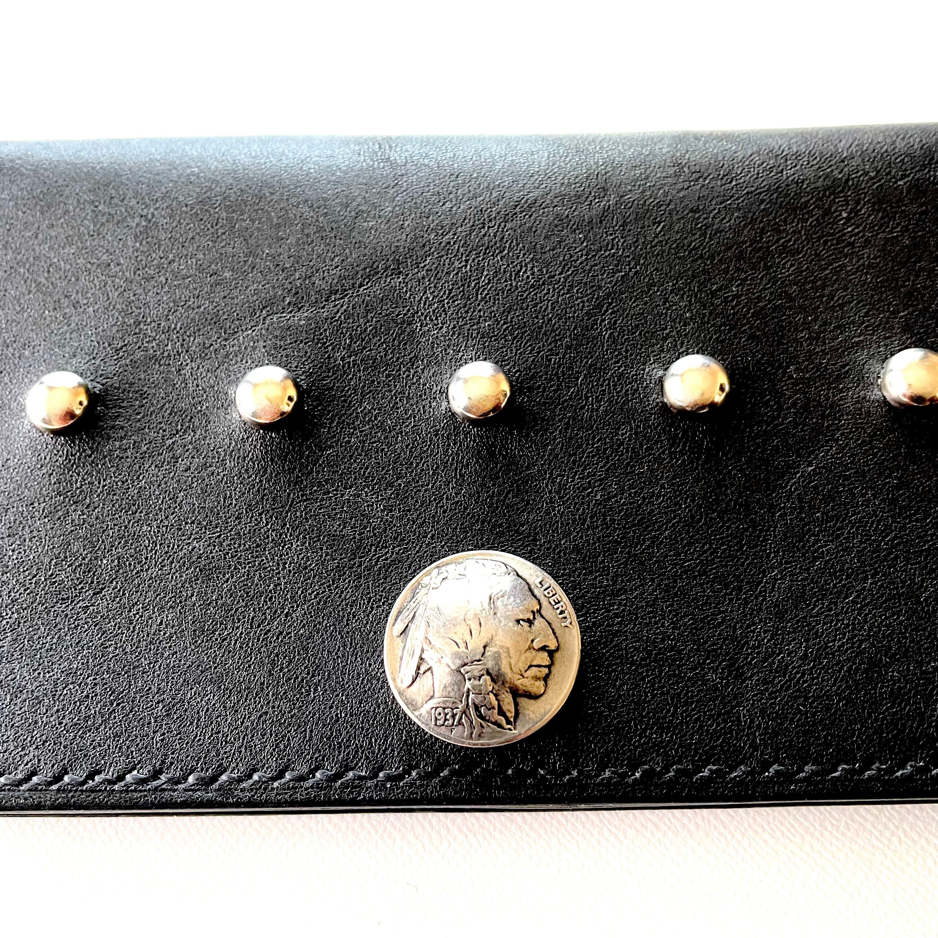 イタリアプリム社ドットホックに、1937年製造のアメリカ実物オールドコインコンチョをネジ止めしています。摩耗しやすいコインと言われていますが、数字もはっきりと確認できる状態のいいものです。