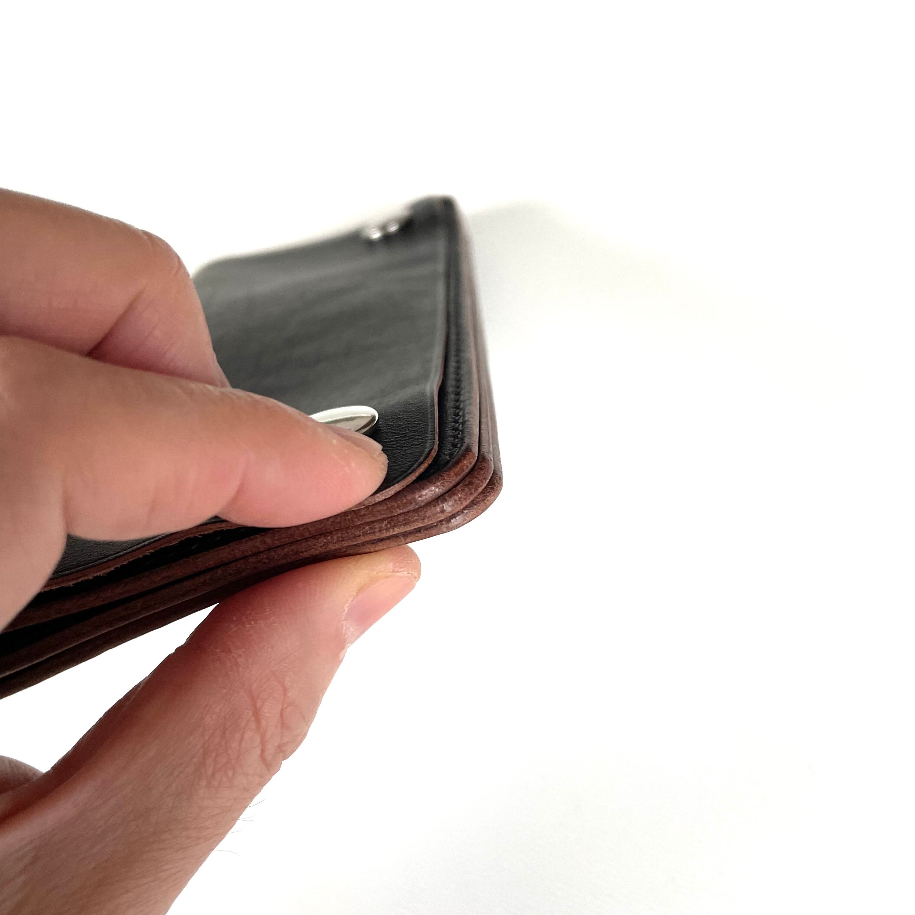 1.3mm前後の薄めの革なので、ポケット収納時の体のラインに馴染みます。