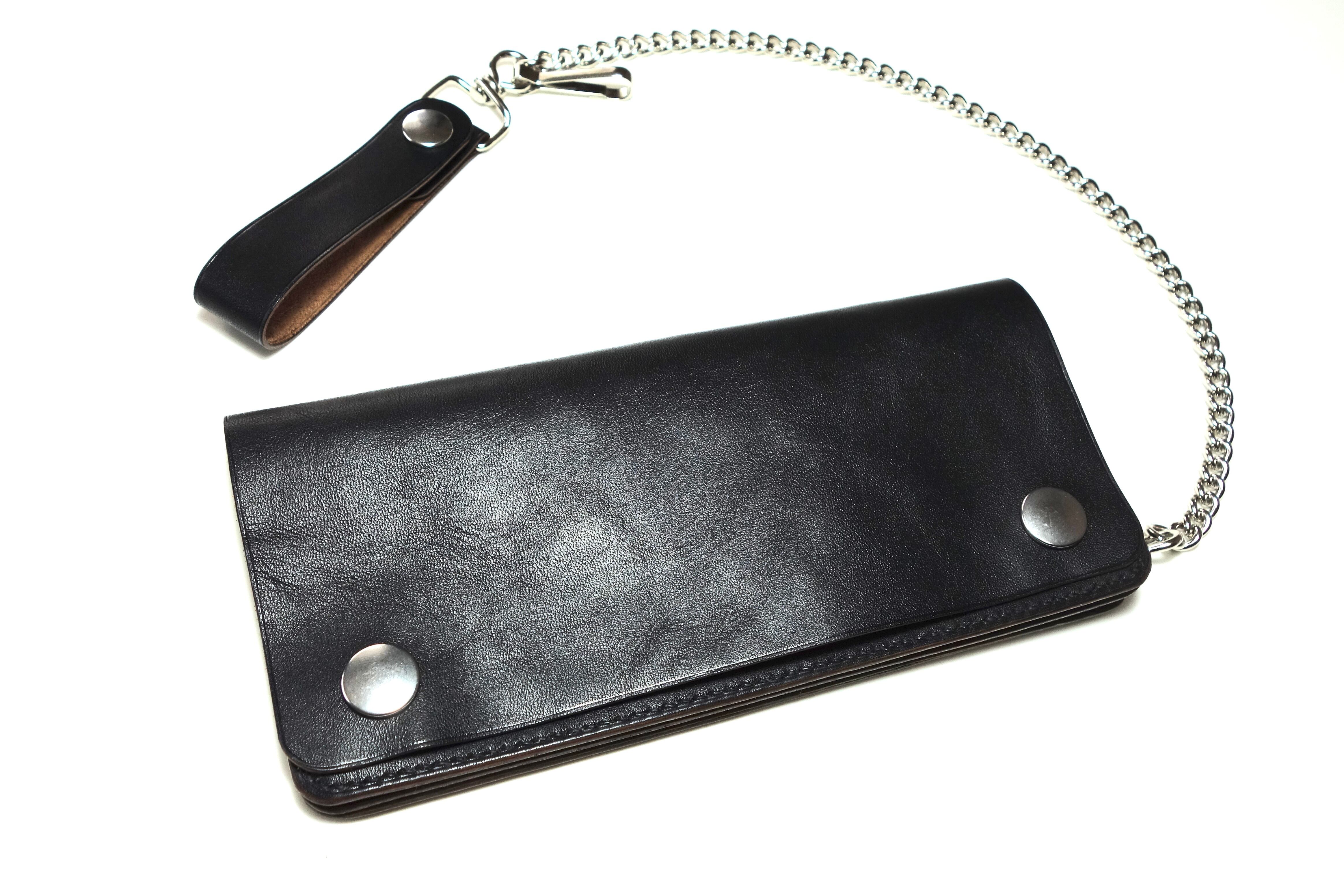 貴重なポーランド産馬革を、専門のタンナーで丁寧に鞣したホースハイドレザーのみで仕立てたトラッカーウォレットです。