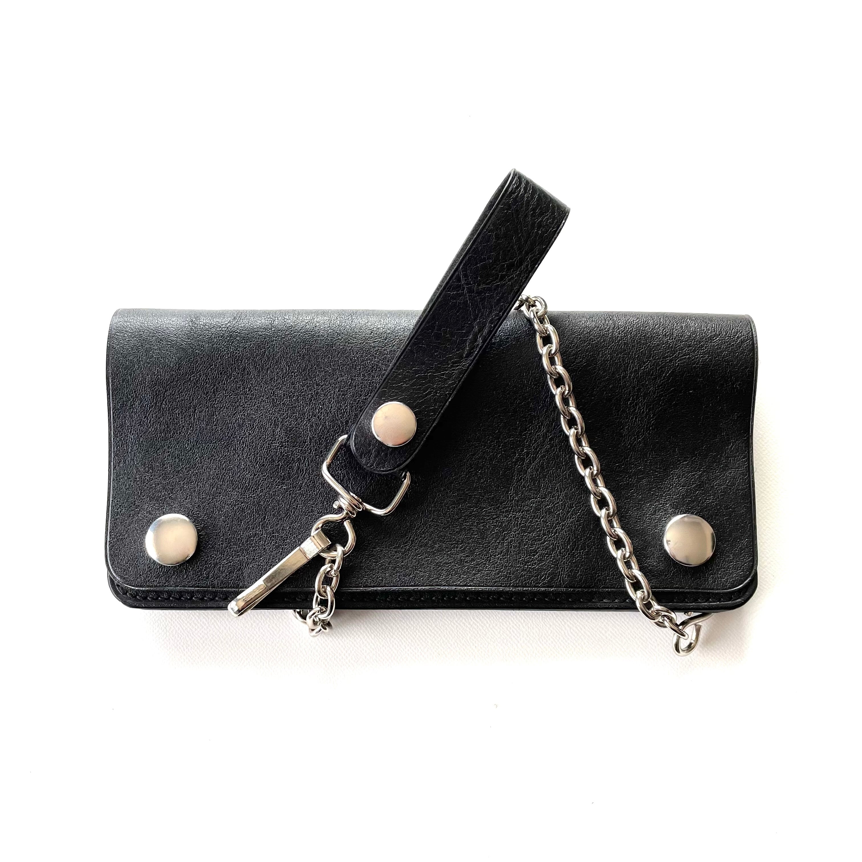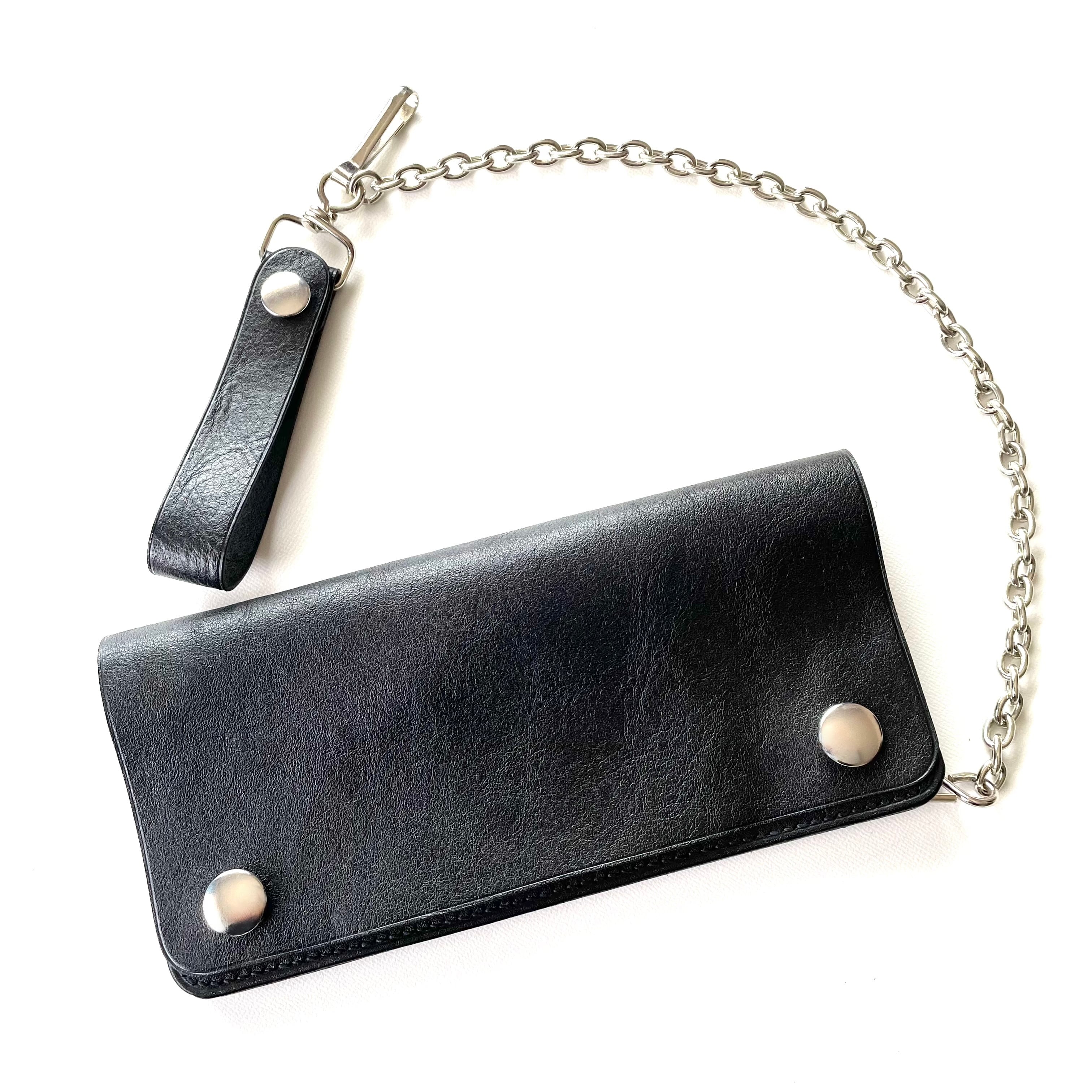 トラッカーウォレット1型 英国クレイトン社ホースフロントレザー ヴィンテージタロンジッパー チェーンセット ブラック